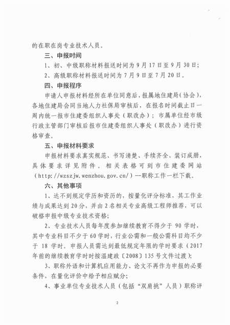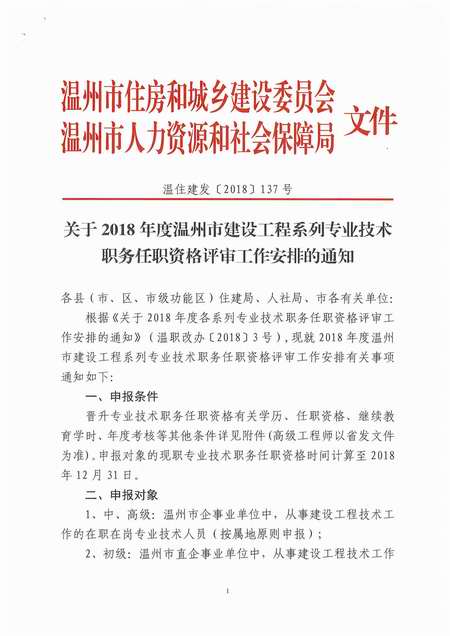 關于2018年度溫州市建設工程系列專業技術職務任職資格評審工作安排的通知
